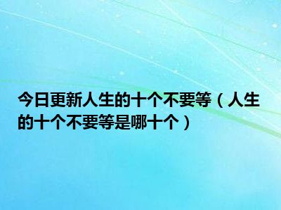 目前上述的内容应该能够为大家解答出大家对于人生的十个不要等!(人生的十个不要等是哪十个)的疑惑了,所以如果大家还想要了解更多的知识内容,也可以关注本站其他文章进行了解哦。