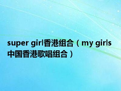 导读 目前是有很多朋友们对于my girls 中国香港歌唱组合这个信息比较感兴趣,那么小编也是收集了一些my girls 中国香港歌唱组合相关的信息来...