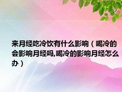 目前大家应该是对喝冷的会影响月经吗,喝冷的影响月经怎么办比较感兴趣的,所以今天小编CC就来为大家整理了一些关于喝冷的会影响月经吗,喝冷的影响月经怎么办方面的相关知识来分享给大家,希望大家会喜欢哦。