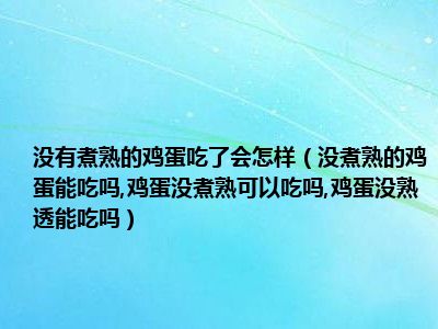 目前大家应该是对没煮熟的鸡蛋能吃吗,鸡蛋没煮熟可以吃吗,鸡蛋没熟透能吃吗比较感兴趣的,所以今天小编CC就来为大家整理了一些关于没煮熟的鸡蛋能吃吗,鸡蛋没煮熟可以吃吗,鸡蛋没熟透能吃吗方面的相关知识来分享给大家,希望大家会喜欢哦。