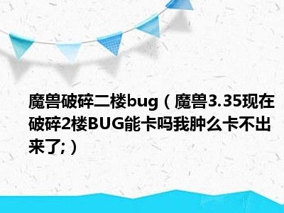 导读相信目前很多小伙伴对于魔兽3.35现在破碎2楼BUG能卡吗我肿么卡不出来了;。都比较感兴趣,那么小编今天在网上也是收集了一些与魔兽3.35现在...