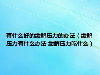 目前大家应该是对缓解压力有什么办法 缓解压力吃什么比较感兴趣的,所以今天小编CC就来为大家整理了一些关于缓解压力有什么办法 缓解压力吃什么方面的相关知识来分享给大家,希望大家会喜欢哦。