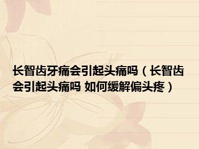 目前大家应该是对长智齿会引起头痛吗 如何缓解偏头疼比较感兴趣的,所以今天小编CC就来为大家整理了一些关于长智齿会引起头痛吗 如何缓解偏头疼方面的相关知识来分享给大家,希望大家会喜欢哦。