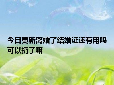 目前大家应该是对离婚了结婚证还有用吗可以扔了嘛比较感兴趣的,所以今天CC就来为大家整理了一些关于离婚了结婚证还有用吗可以扔了嘛方面的相关知识来分享给大家,希望大家会喜欢哦。