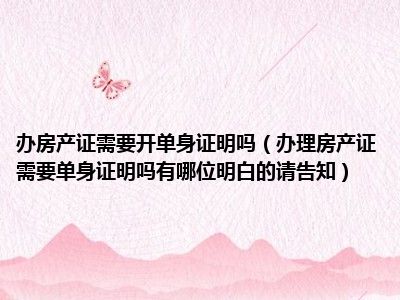 导读 目前大家应该是对办理房产证需要单身证明吗有哪位明白的请告知比较感兴趣的,所以今天好房网小编CC就来为大家整理了一些关于办理房产证需要