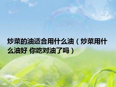 目前大家应该是对炒菜用什么油好 你吃对油了吗比较感兴趣的,所以今天小编CC就来为大家整理了一些关于炒菜用什么油好 你吃对油了吗方面的相关知识来分享给大家,希望大家会喜欢哦。