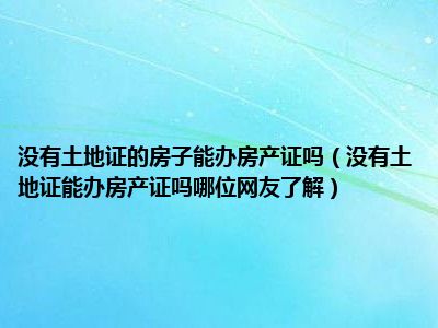 导读 目前大家应该是对没有土地证能办房产证吗哪位网友了解比较感兴趣的,所以今天好房网小编CC就来为大家整理了一些关于没有土地证能办房产证吗