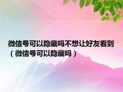 1、 微信号可以隐藏吗