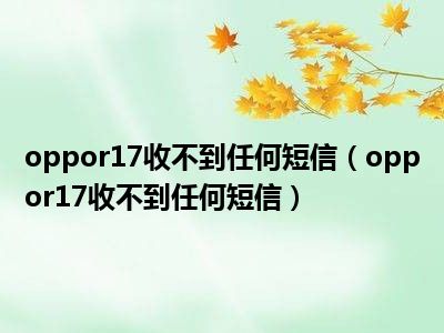 导读 1、oppor17收不到任何短信2、oppor17收不到任何短信的成因和解决方法有:3、1 手机欠费4、这是最基本的问题。现在的手机一般都是信用评级的