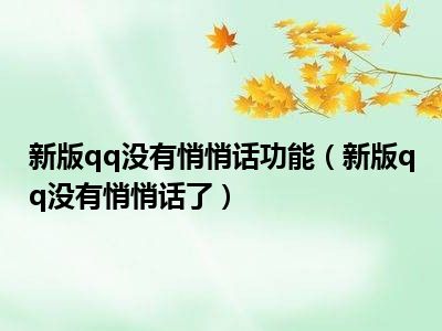 导读 1、新版qq没有悄悄话了2、最新版本的QQ有密语功能,可能是用户在设置中没有开启该功能造成的。3、QQ是腾讯QQ的简称,是一款基于互联网的即