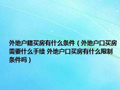 导读 目前大家应该是对外地户口买房需要什么手续 外地户口买房有什么限制条件吗比较感兴趣的,所以今天好房网小编CC就来为大家整理了一些关于外