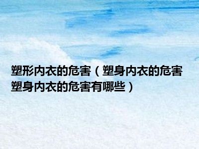 目前大家应该是对塑身内衣的危害 塑身内衣的危害有哪些比较感兴趣的,所以今天小编CC就来为大家整理了一些关于塑身内衣的危害 塑身内衣的危害有哪些方面的相关知识来分享给大家,希望大家会喜欢哦。