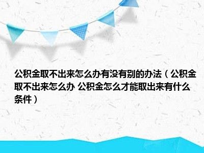 导读 目前大家应该是对公积金取不出来怎么办 公积金怎么才能取出来有什么条件比较感兴趣的,所以今天好房网小编CC就来为大家整理了一些关于公积