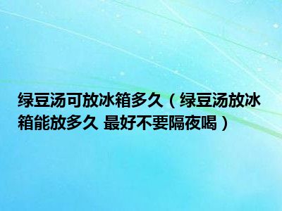 目前大家应该是对绿豆汤放冰箱能放多久 最好不要隔夜喝比较感兴趣的,所以今天小编CC就来为大家整理了一些关于绿豆汤放冰箱能放多久 最好不要隔夜喝方面的相关知识来分享给大家,希望大家会喜欢哦。