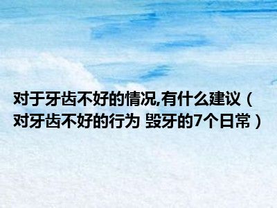 目前大家应该是对对牙齿不好的行为 毁牙的7个日常比较感兴趣的,所以今天小编CC就来为大家整理了一些关于对牙齿不好的行为 毁牙的7个日常方面的相关知识来分享给大家,希望大家会喜欢哦。