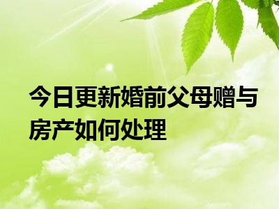 - 2022-06-01今日更新婚前父母赠与房产怎么处理