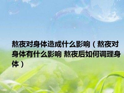 目前大家应该是对熬夜对身体有什么影响 熬夜后如何调理身体比较感兴趣的,所以今天小编CC就来为大家整理了一些关于熬夜对身体有什么影响 熬夜后如何调理身体方面的相关知识来分享给大家,希望大家会喜欢哦。