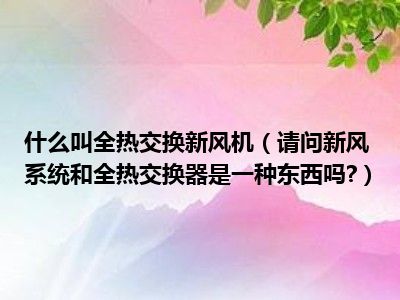 相信目前很多小伙伴对于请问新风系统和全热交换器是一种东西吗?都比较感兴趣,那么小编今天在网上也是收集了一些与请问新风系统和全热交换器是一种东西吗?相关的信息来分享给大家,希望能够帮助到大家哦。