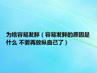 目前大家应该是对容易发胖的原因是什么 不要再放纵自己了比较感兴趣的,所以今天小编CC就来为大家整理了一些关于容易发胖的原因是什么 不要再放纵自己了方面的相关知识来分享给大家,希望大家会喜欢哦。