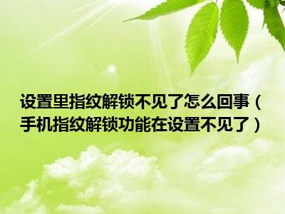 导读 1、手机指纹解锁功能在设置不见了2、手机指纹解锁功能在设置不见了的原因是指纹区域受到尖锐物体的撞击和挤压时,设备可能会损坏,或者指纹