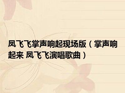 导读 目前是有很多朋友们对于掌声响起来 凤飞飞演唱歌曲这个信息比较感兴趣,那么小编也是收集了一些掌声响起来 凤飞飞演唱歌曲相关的信息来分