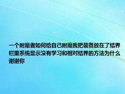 导读 相信目前很多小伙伴对于附魔师怎么给自己附魔 我把装备放在 附魔栏里 系统显示没有学习和相对的附魔方法 这是为什么啊? 谢谢都比较感...
