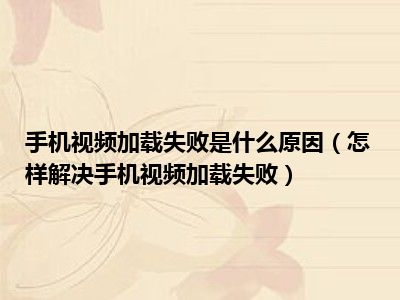 导读 1、怎样解决手机视频加载失败2、手机视频加载失败的解决方法如下:3、1 最近上市的手机不支持闪光灯功能。如果您需要播放在线视频,请使用
