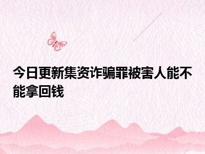 目前大家应该是对集资诈骗罪被害人能不能拿回钱比较感兴趣的,所以今天CC就来为大家整理了一些关于集资诈骗罪被害人能不能拿回钱方面的相关知识来分享给大家,希望大家会喜欢哦。