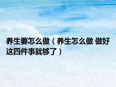 目前大家应该是对养生怎么做 做好这四件事就够了比较感兴趣的,所以今天小编CC就来为大家整理了一些关于养生怎么做 做好这四件事就够了方面的相关知识来分享给大家,希望大家会喜欢哦。