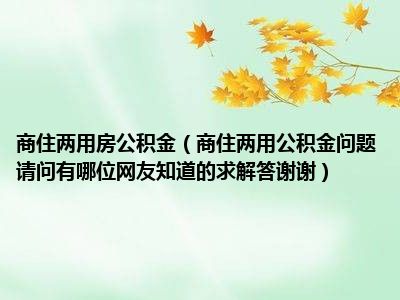 导读 目前大家应该是对商住两用公积金问题请问有哪位网友知道的,求解答!谢谢!比较感兴趣的,所以今天好房网小编CC就来为大家整理了一些关于商