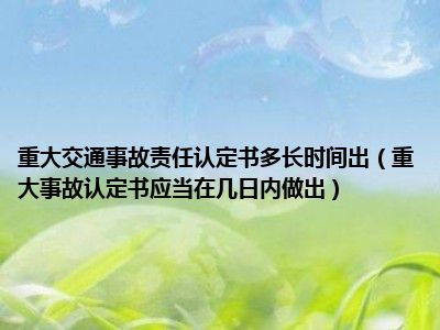 目前大家应该是对重大事故认定书应当在几日内做出比较感兴趣的,所以今天CC就来为大家整理了一些关于重大事故认定书应当在几日内做出方面的相关知识来分享给大家,希望大家会喜欢哦。