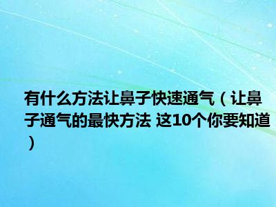 目前大家应该是对让鼻子通气的最快方法 这10个你要知道比较感兴趣的,所以今天小编CC就来为大家整理了一些关于让鼻子通气的最快方法 这10个你要知道方面的相关知识来分享给大家,希望大家会喜欢哦。