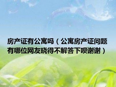 导读 目前大家应该是对公寓房产证问题有哪位网友晓得不,解答下呗,谢谢!比较感兴趣的,所以今天好房网小编CC就来为大家整理了一些关于公寓房产