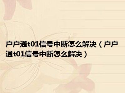导读 1、户户通t01信号中断怎么解决2、户籍t01信号中断的解决方案是:3、1 检查机顶盒的连接器是否松动或掉落。4、2 电视调出信号检测画面后,检