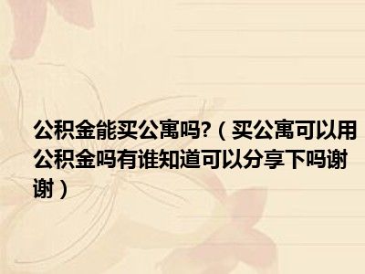 导读 目前大家应该是对买公寓可以用公积金吗有谁知道,可以分享下吗,谢谢!比较感兴趣的,所以今天好房网小编CC就来为大家整理了一些关于买公寓