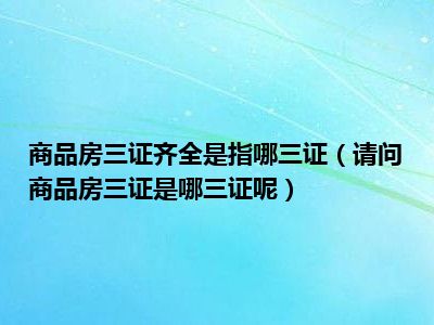导读 目前大家应该是对请问,商品房三证是哪三证呢比较感兴趣的,所以今天好房网小编CC就来为大家整理了一些关于请问,商品房三证是哪三证呢方面