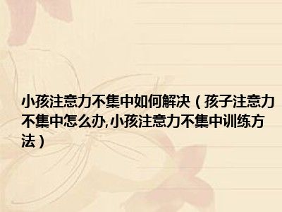目前大家应该是对孩子注意力不集中怎么办,小孩注意力不集中训练方法比较感兴趣的,所以今天小编CC就来为大家整理了一些关于孩子注意力不集中怎么办,小孩注意力不集中训练方法方面的相关知识来分享给大家,希望大家会喜欢哦。