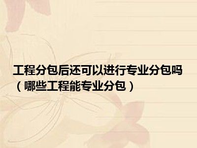 目前大家应该是对哪些工程能专业分包比较感兴趣的,所以今天CC就来为大家整理了一些关于哪些工程能专业分包方面的相关知识来分享给大家,希望大家会喜欢哦。