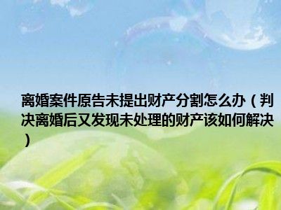 目前大家应该是对判决离婚后又发现未处理的财产该如何解决比较感兴趣的,所以今天CC就来为大家整理了一些关于判决离婚后又发现未处理的财产该如何解决方面的相关知识来分享给大家,希望大家会喜欢哦。