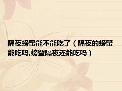 目前大家应该是对隔夜的螃蟹能吃吗,螃蟹隔夜还能吃吗比较感兴趣的,所以今天小编CC就来为大家整理了一些关于隔夜的螃蟹能吃吗,螃蟹隔夜还能吃吗方面的相关知识来分享给大家,希望大家会喜欢哦。