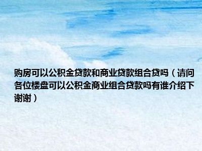 导读 目前大家应该是对请问各位,楼盘可以公积金商业组合贷款吗有谁介绍下,谢谢!比较感兴趣的,所以今天好房网小编CC就来为大家整理了一些关于
