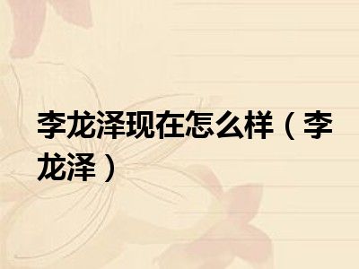 导读 目前是有很多朋友们对于李龙泽这个信息比较感兴趣,那么小编也是收集了一些李龙泽相关的信息来分享给大家,希望你会喜欢哦。
