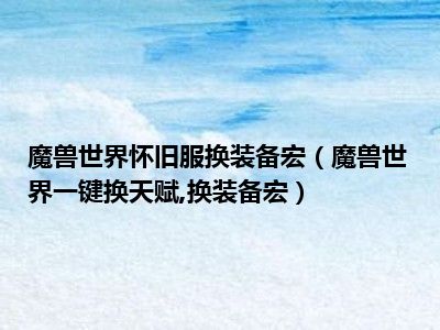 相信目前很多小伙伴对于魔兽世界一键换天赋,换装备宏都比较感兴趣,那么小编今天在网上也是收集了一些与魔兽世界一键换天赋,换装备宏相关的信息来分享给大家,希望能够帮助到大家哦。