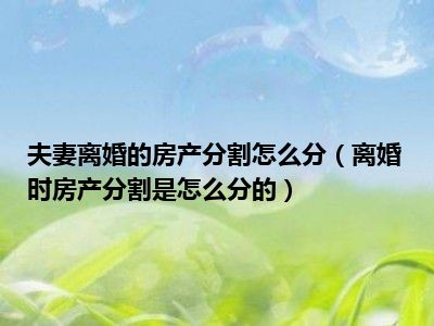 目前大家应该是对离婚时房产分割是怎么分的比较感兴趣的,所以今天CC就来为大家整理了一些关于离婚时房产分割是怎么分的方面的相关知识来分享给大家,希望大家会喜欢哦。