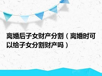 目前大家应该是对离婚时可以给子女分割财产吗比较感兴趣的,所以今天CC就来为大家整理了一些关于离婚时可以给子女分割财产吗方面的相关知识来分享给大家,希望大家会喜欢哦。