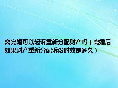 目前大家应该是对离婚后如果财产重新分配,诉讼时效是多久比较感兴趣的,所以今天CC就来为大家整理了一些关于离婚后如果财产重新分配,诉讼时效是多久方面的相关知识来分享给大家,希望大家会喜欢哦。