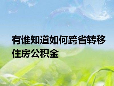 导读 目前大家应该是对哪位知道跨省住房公积金怎么转移比较感兴趣的,所以今天好房网小编CC就来为大家整理了一些关于哪位知道跨省住房公