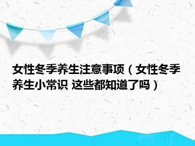 目前大家应该是对女性冬季养生小常识 这些都知道了吗比较感兴趣的,所以今天小编CC就来为大家整理了一些关于女性冬季养生小常识 这些都知道了吗方面的相关知识来分享给大家,希望大家会喜欢哦。