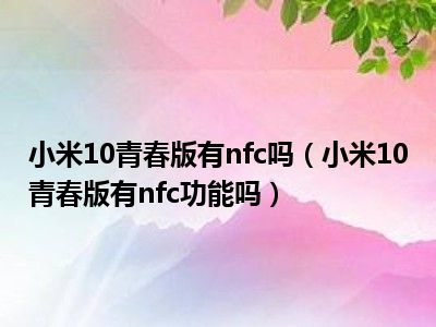 导读 1、小米10青春版有nfc功能吗?2、小米10青春版有nfc,可以在小米钱包使用小米公交、Mi Pay、小米门卡、eID、e车钥匙等功能。3、小米10青