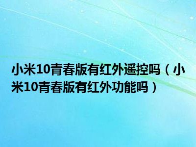 导读 1、小米10青春版有红外功能吗?2、小米10青春版有红外功能,带红外遥控功能的手机可以代替遥控器遥控常用家电。而且一部手机可以存储很多信